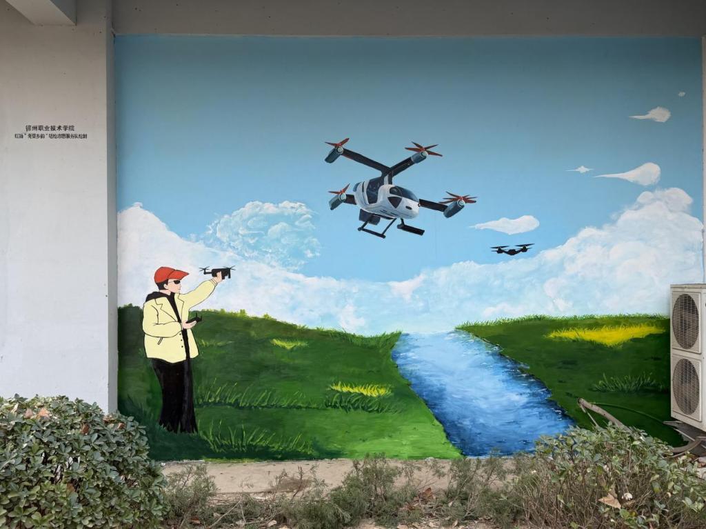 德州职业技术学院红扬“青葵乡韵”墙绘志愿服务队开展以“低空经济”为主题的墙绘创作活动