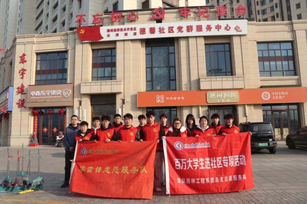 2026年3月12日,德州职业技术学院建筑园林工程系组织志愿者走进德馨社区,开展学雷锋志愿服务活动,由我系学生科副科长孔祥飞带队参与。