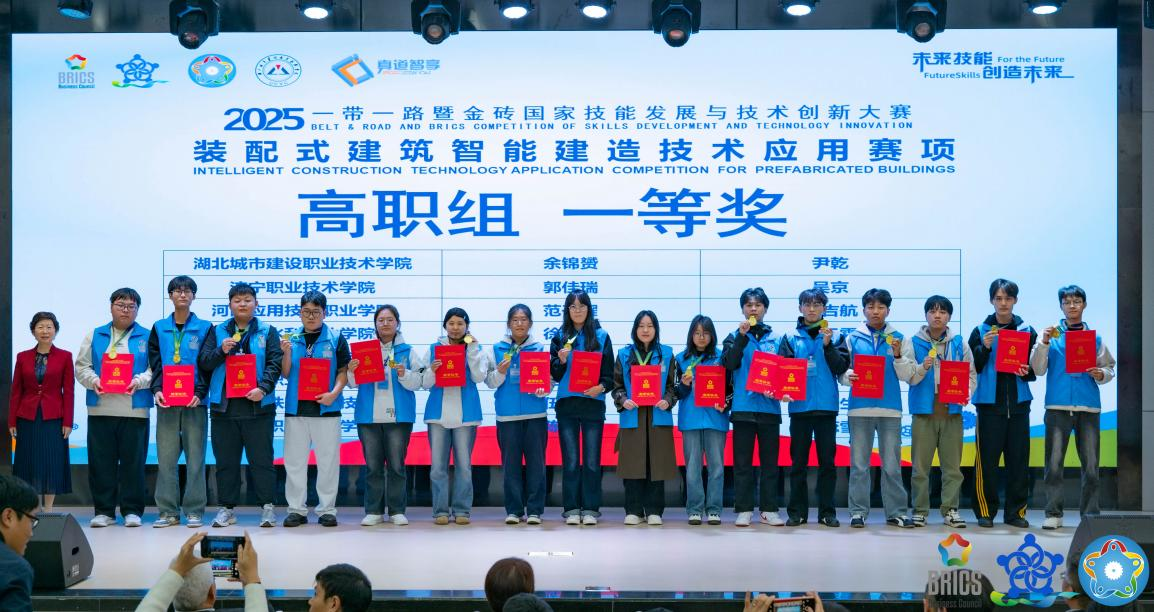 2025年10月 24日,一带一路暨金砖国家技能发展与技术创新大赛装配式建筑智能建造技术应用赛项全国总决赛在武汉落幕。德州职业技术学院1队从全国149支参赛队伍中脱颖而出荣获第6名,斩获金牌(一等奖)。
